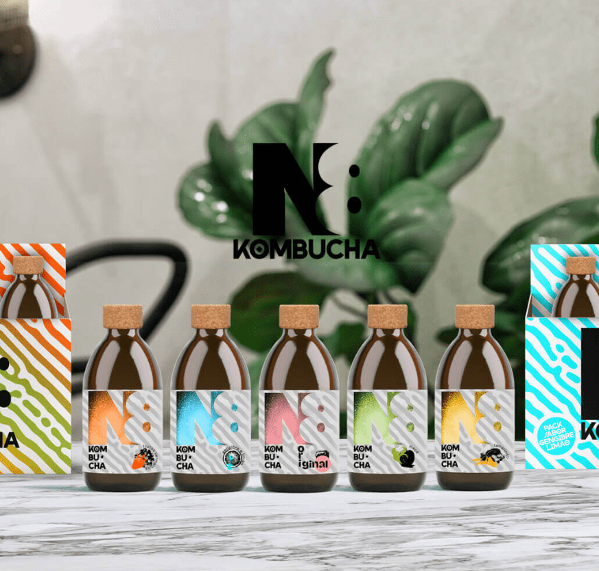 Teamwork where I had the opportunity to create the packaging, design of 5 flavor bottles and a can for N8 Kombucha.