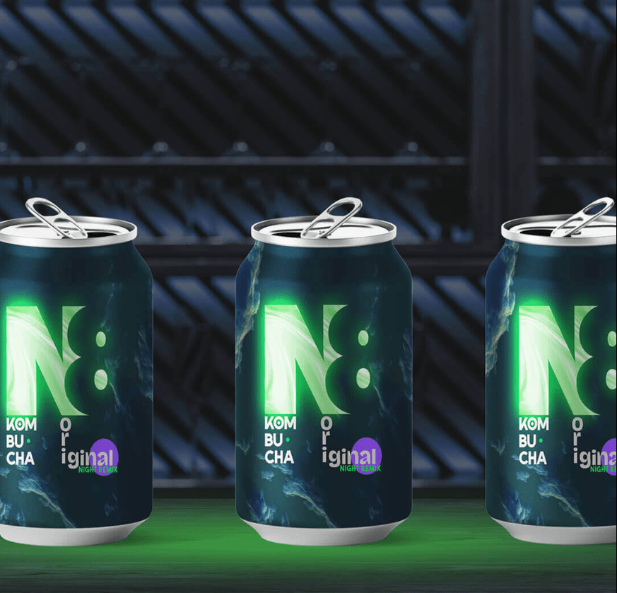 Design and concept of a Night Version can for N8 Kombucha made for Bovem Studio.