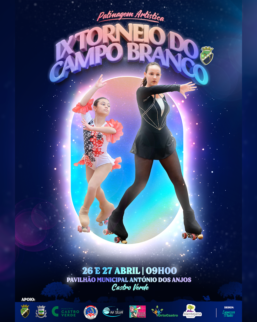 Design of an event flyer about an artistic roller skating championship in Portugal.